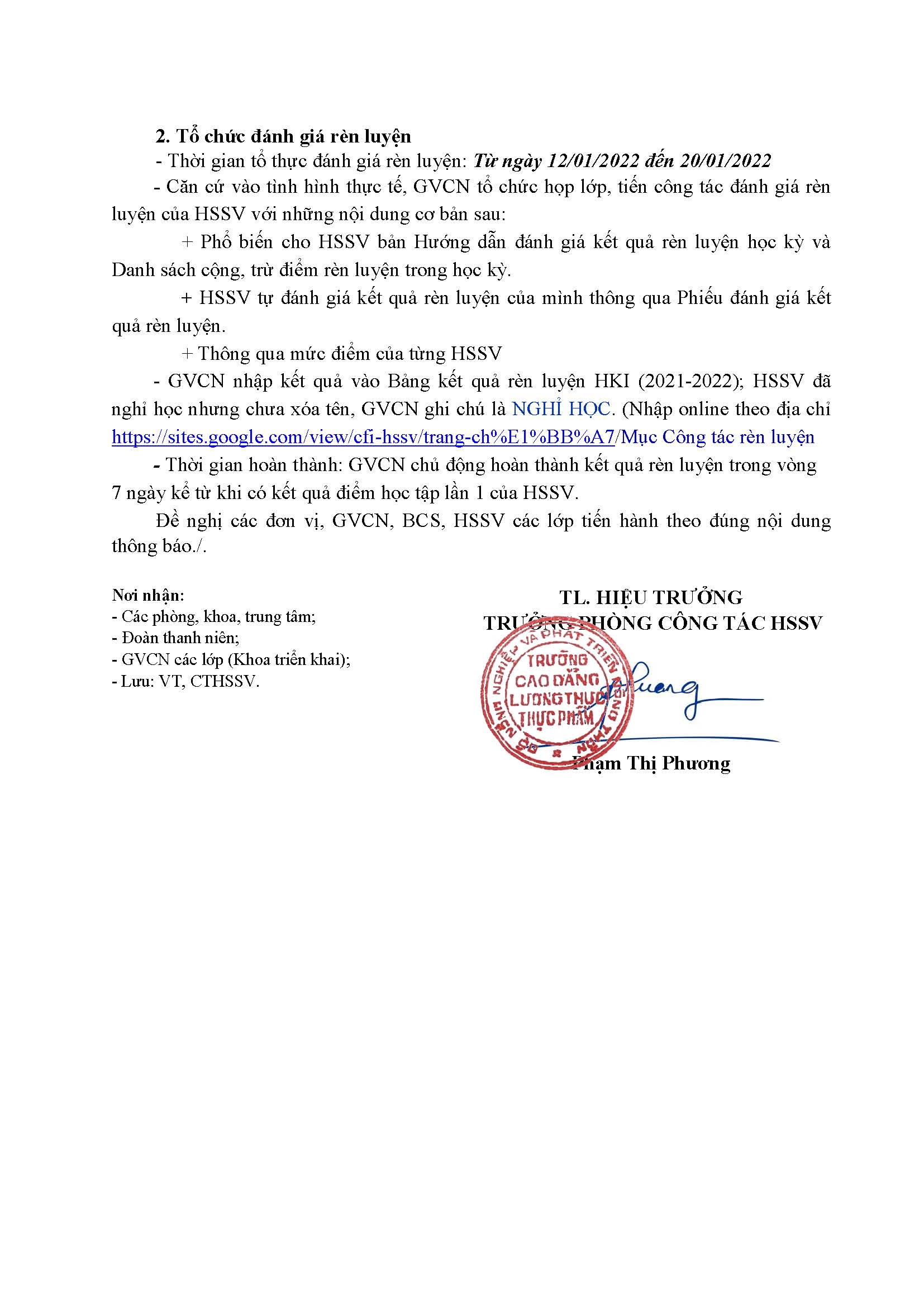 Thông báo về việc cung cấp thông tin và đánh giá kết quả rèn luyện của HSSV HK1 (21-22)
